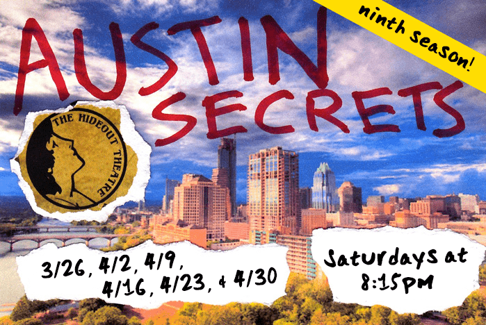 Austin Secrets uses live improvisation to explore secrets anonymously submitted by you and other festival goers. Serious secrets will be treated with proper respect, and more lighthearted secrets will be treated with wit, humor, and even a bit of satire. So expect a mix of comedy, some drama, and everything in between. Originally running for an unprecedented NINE seasons, Austin Secrets has also been "franchised" in cities around the USA. Austin Secrets is inspired by projects like