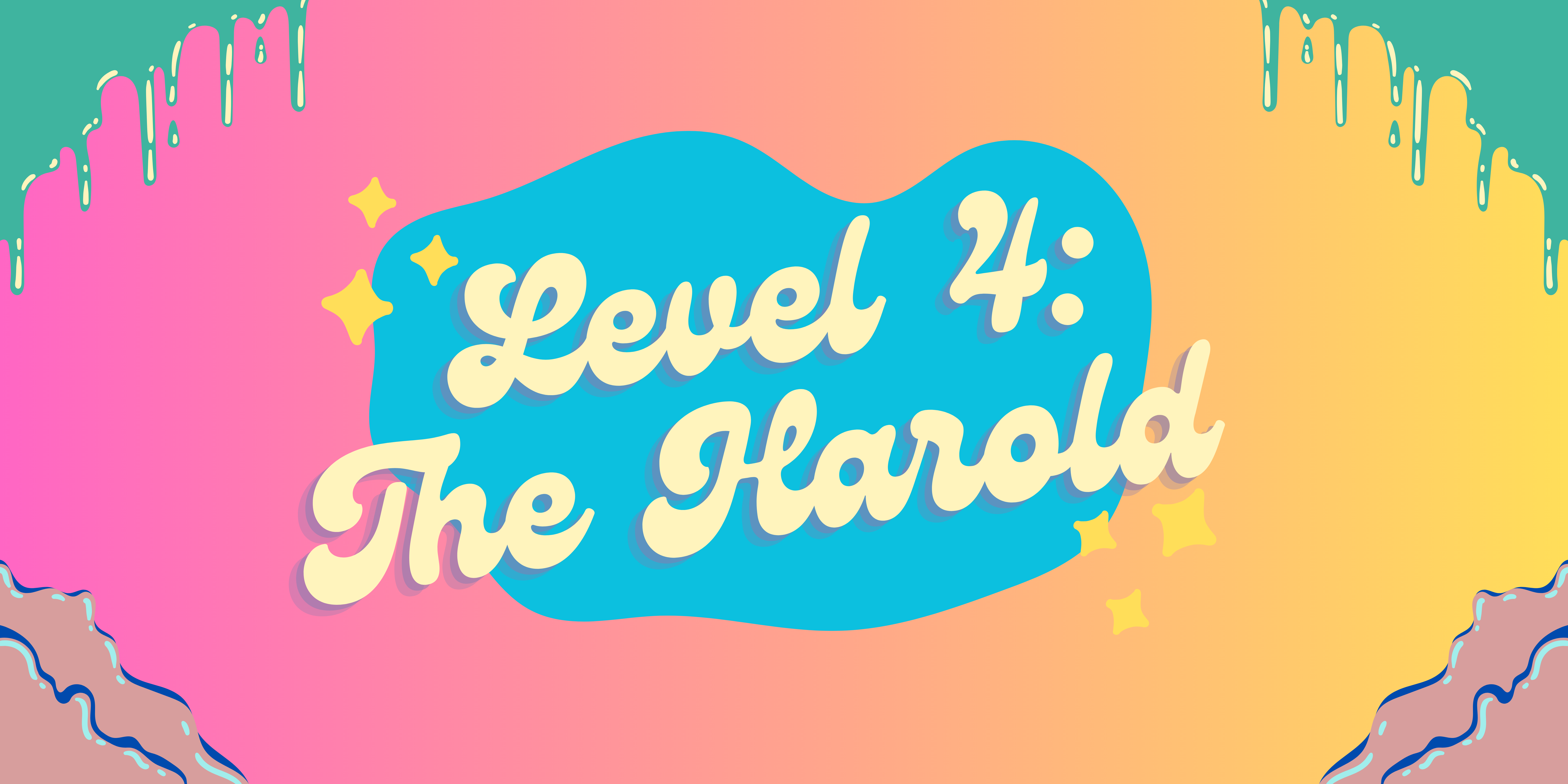 Level 4 (The Harold): Let's put it all together, folks! Join us as we dive deep into the original longform, the beast itself, THE HAROLD. This class will examine deeply every avenue that goes into the piece, and all the ways you can make it your own.