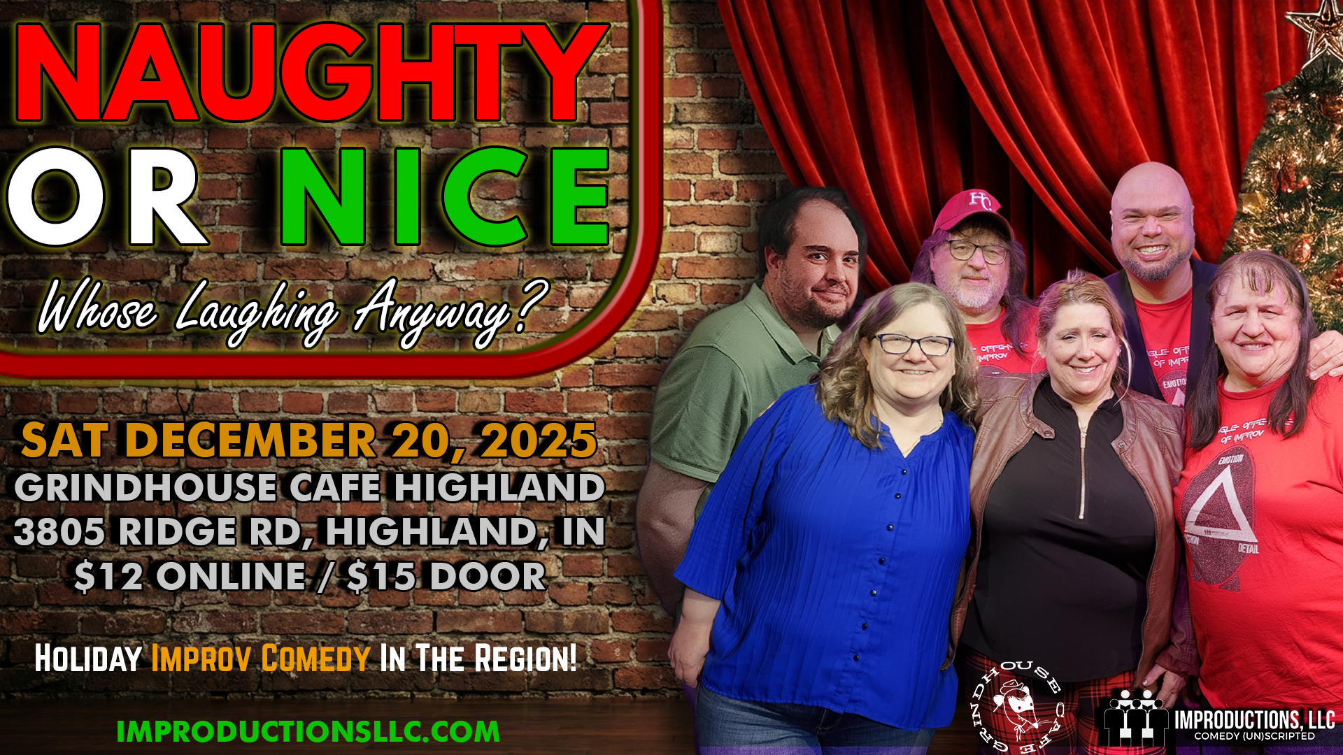 From classic holiday traditions to bizarre, offbeat audience input, nothing is safe from the comedic minds of the cast. We bring the quick wit; you bring the festive ideas and the roaring laughter!