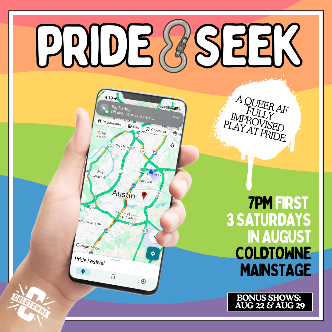 Pride & Seek is a fabulously queer, hour-long improvised narrative that plunges audiences into the glittery chaos of a Pride festival—through the eyes of a couple desperately trying to reconnect. But as with any good love story, things don’t go according to plan. Missed connections, outrageous characters, and wild Pride hijinks send them on a hilariously heartfelt quest filled with unexpected wisdom and emotional revelations. Will they reunite? Will they stay together? No one—including the performers—knows until the final moment.