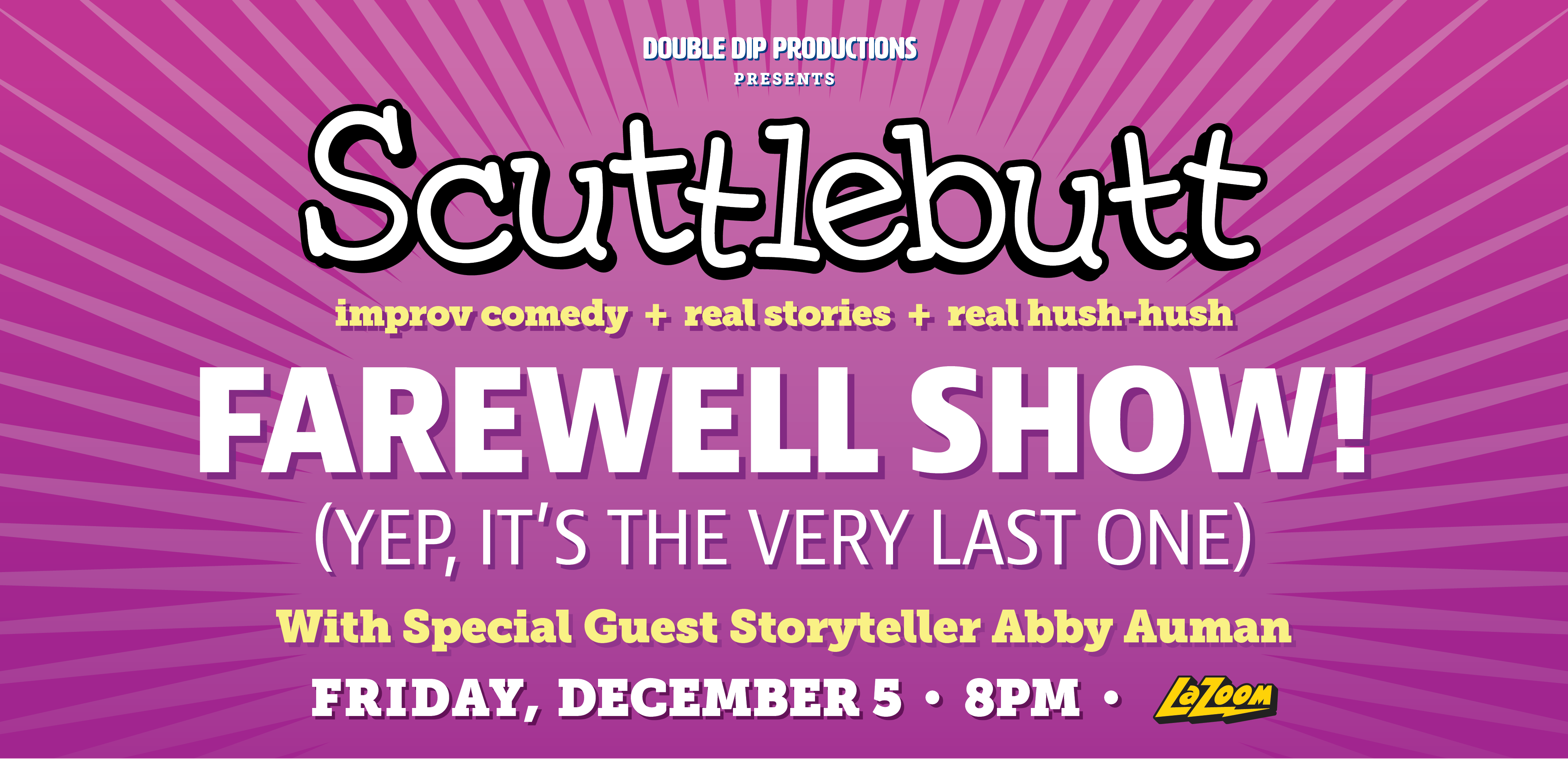 OMG, did you hear the hot goss???? Scuttlebutt is calling it a day after two fantastic years of improv and storytelling in the 828! Our cast is made up of amazing performers who took inspiration from real stories and created a wild and wacky world where anything goes and everything is hilarious and we cannot express how lucky we were to have them on the Scuttlebutt team!