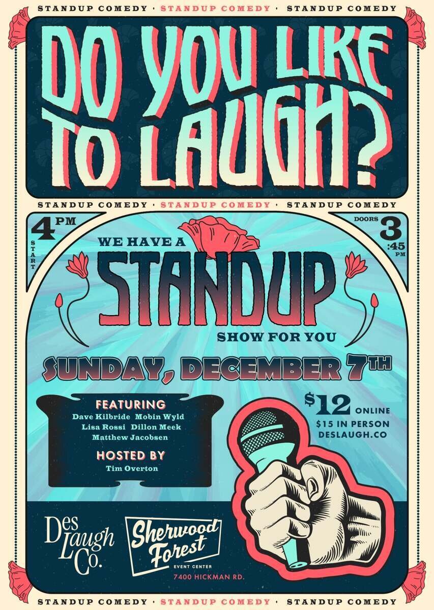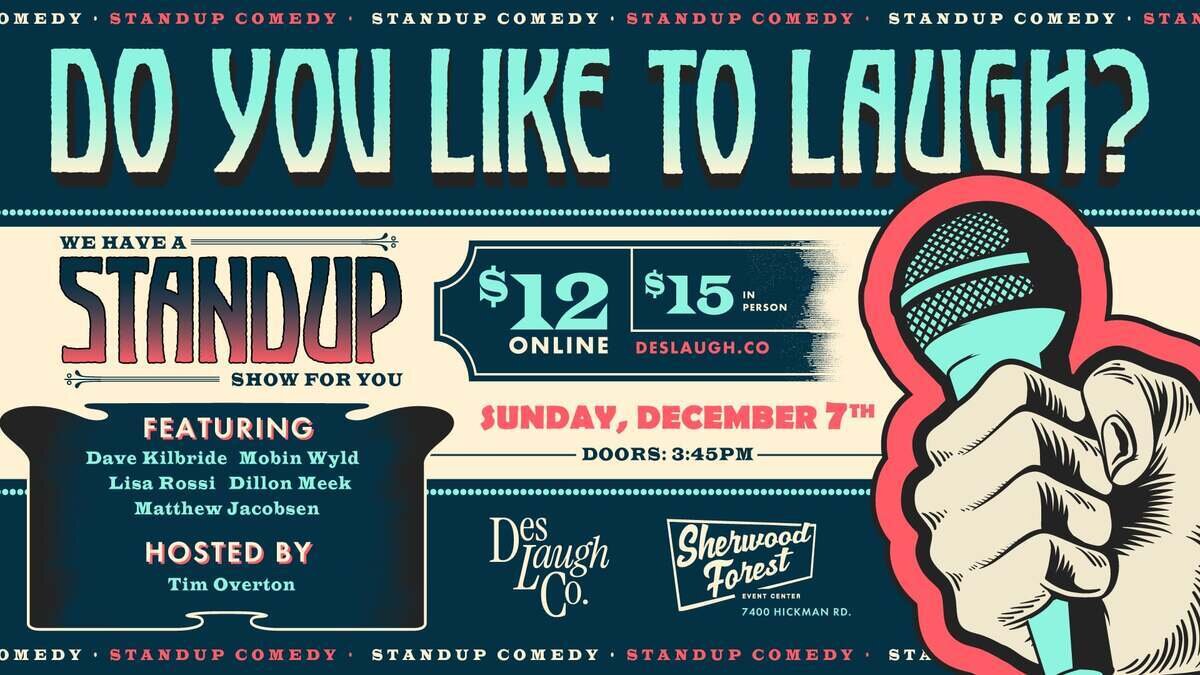 Des Laugh Co. presents an afternoon of Stand-Up Comedy at the Sherwood Forest Event Center!