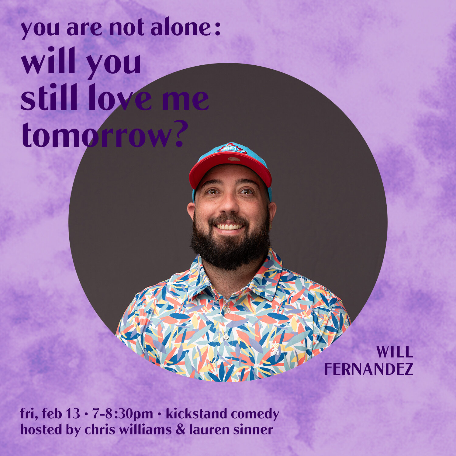 Will You Still Love Me Tomorrow? explores love in all its forms. The rush of infatuation, the quiet work of self-love, the steadiness of friendship, and the messy, beautiful uncertainty of romance. Through honest, funny, and deeply human stories, our storytellers reflect on what it means to want connection, to fear losing it, and to learn how to stay open anyway.